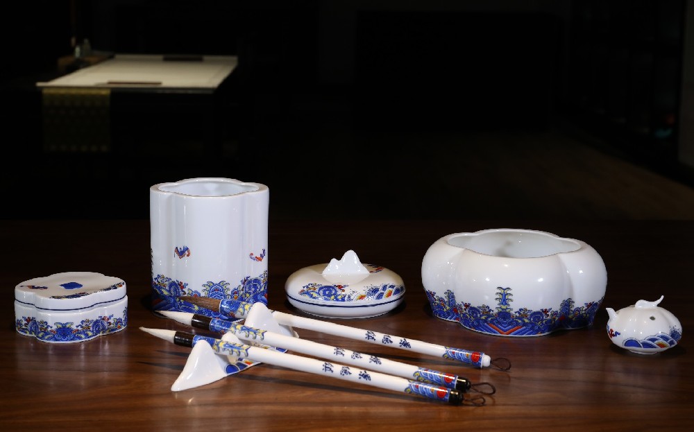 金獎(jiǎng)作品《福山壽?!肺木?,作者江維,該產(chǎn)品采用海棠花為原型變形而來,花面采用傳統(tǒng)的海水江崖紋與蝙蝠紋相結(jié)合,寓意福山壽海。精致胎瓷襯之青花斗彩壽山福海紋飾,喻為壽如山高﹑福似海深,國祚綿長。下方裝飾有波濤翻卷的海浪,挺立的巖石,海水象征大江大河,在海水紋的中間,聳立著巖石。江水和山石組合,象征“江山”有綿延不斷、福山壽海、一統(tǒng)山河、萬世升平、江山永固等寓意。